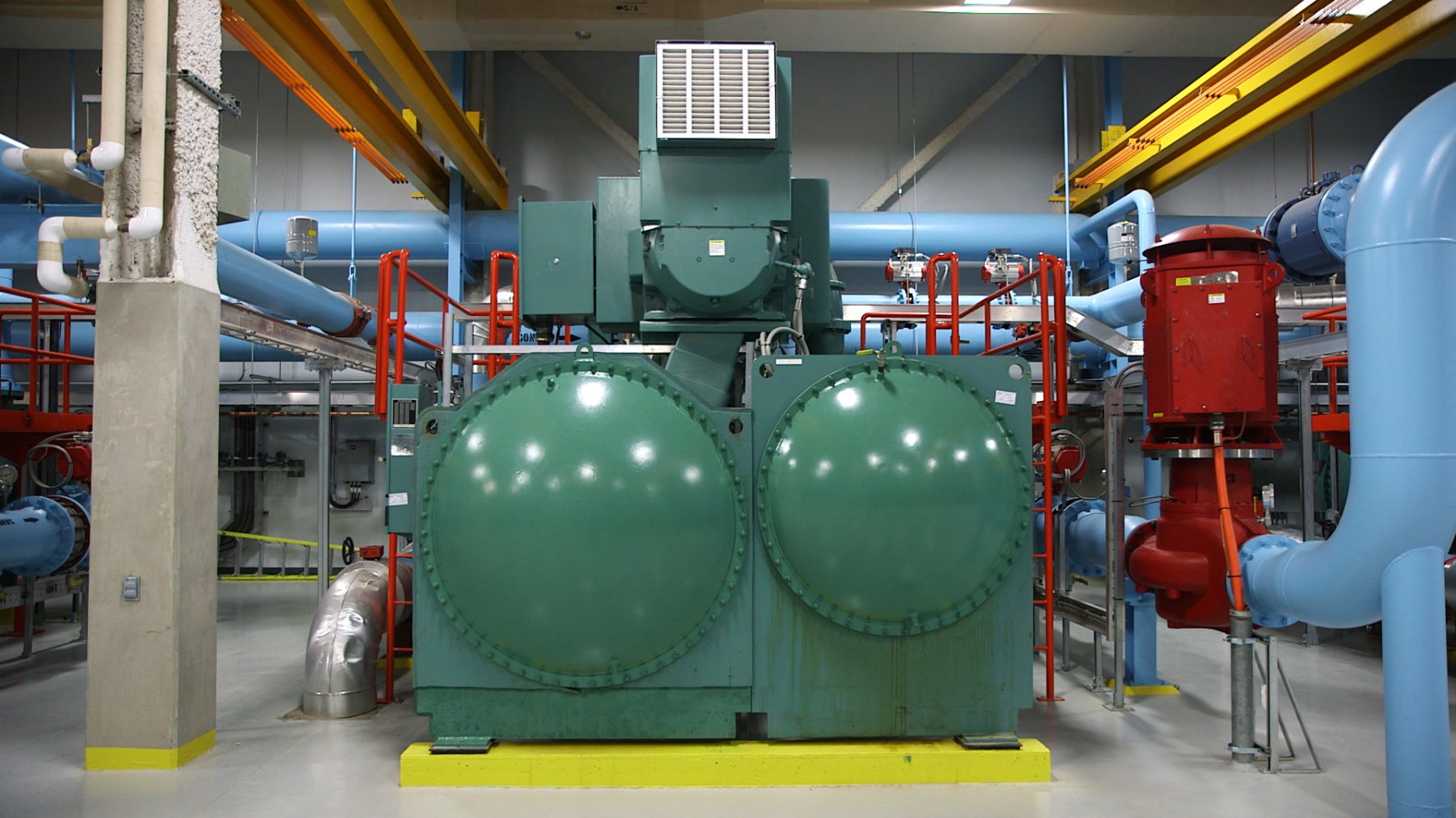 This cooling plant is located directly east of the Edmonton Clinic on the University of Alberta campus. The building contains two floors and a 25-foot basement, with a 45-foot roof. The main purpose of the building is to house heavy cooling plant process equipment; however, a portion is used for light industrial fabrication and for office space.