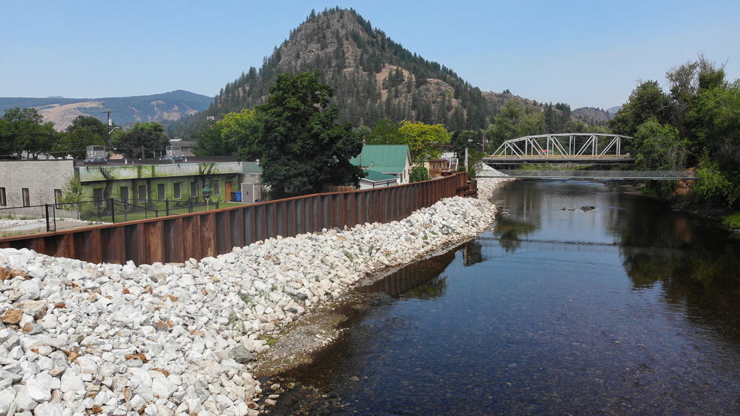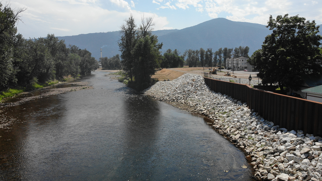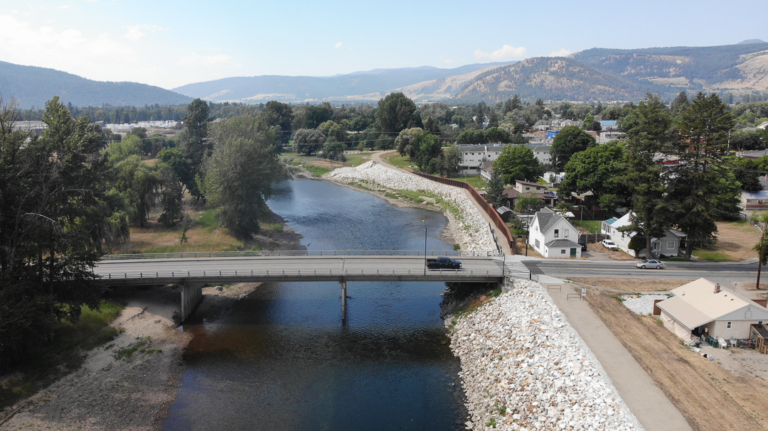 This project involves creating concrete, sheet pile, and earth barriers, as well as constructing two new stormwater pump stations, to protect approximately 830m of the riverside in Grand Forks, BC.