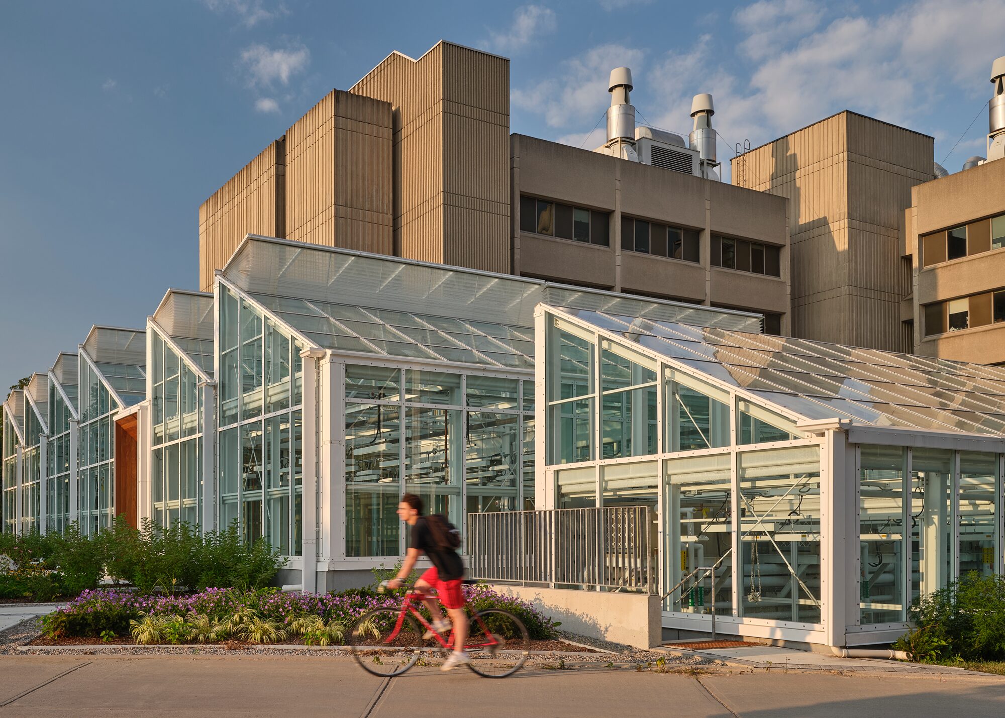 This greenhouse is the first building on campus to utilize a geothermal heating system and offers space to accommodate over 200 plant species from various climate zones. To ensure the building meets future experimental requirements, our team and consultants collaborated with campus professors to create climate control systems that maintain precise conditions, regardless of external temperatures.
