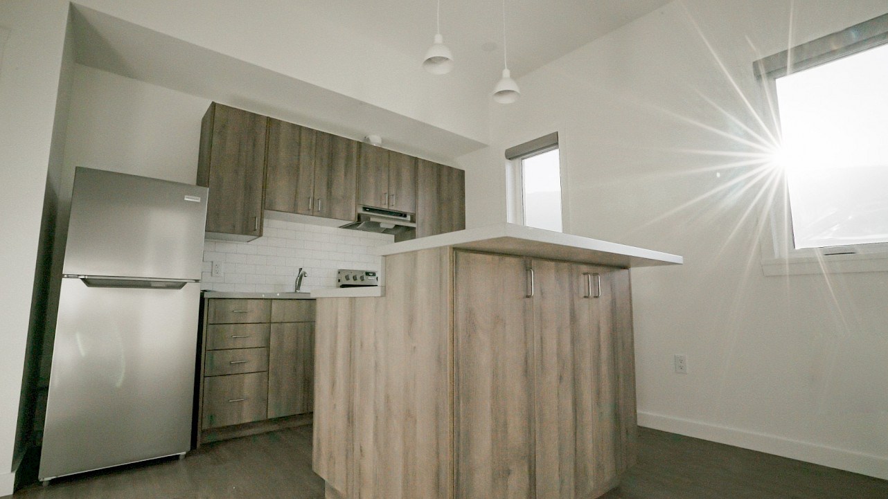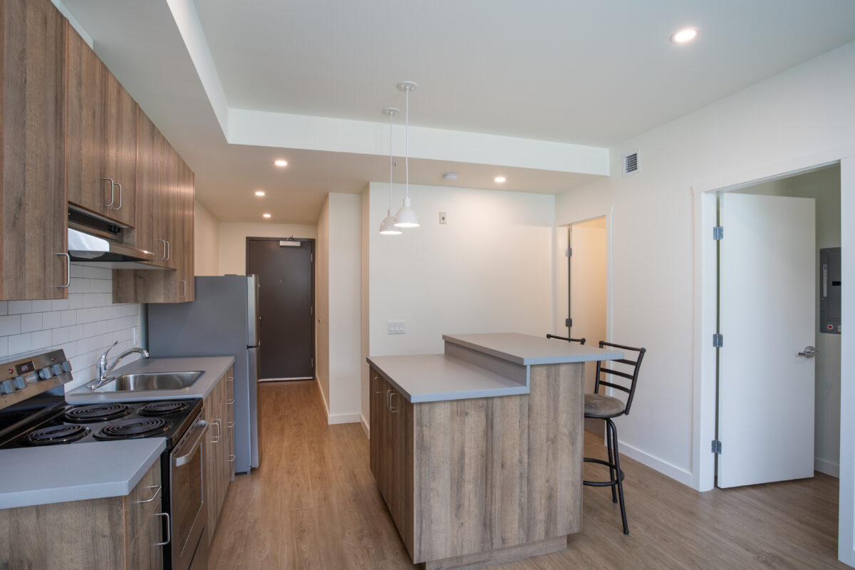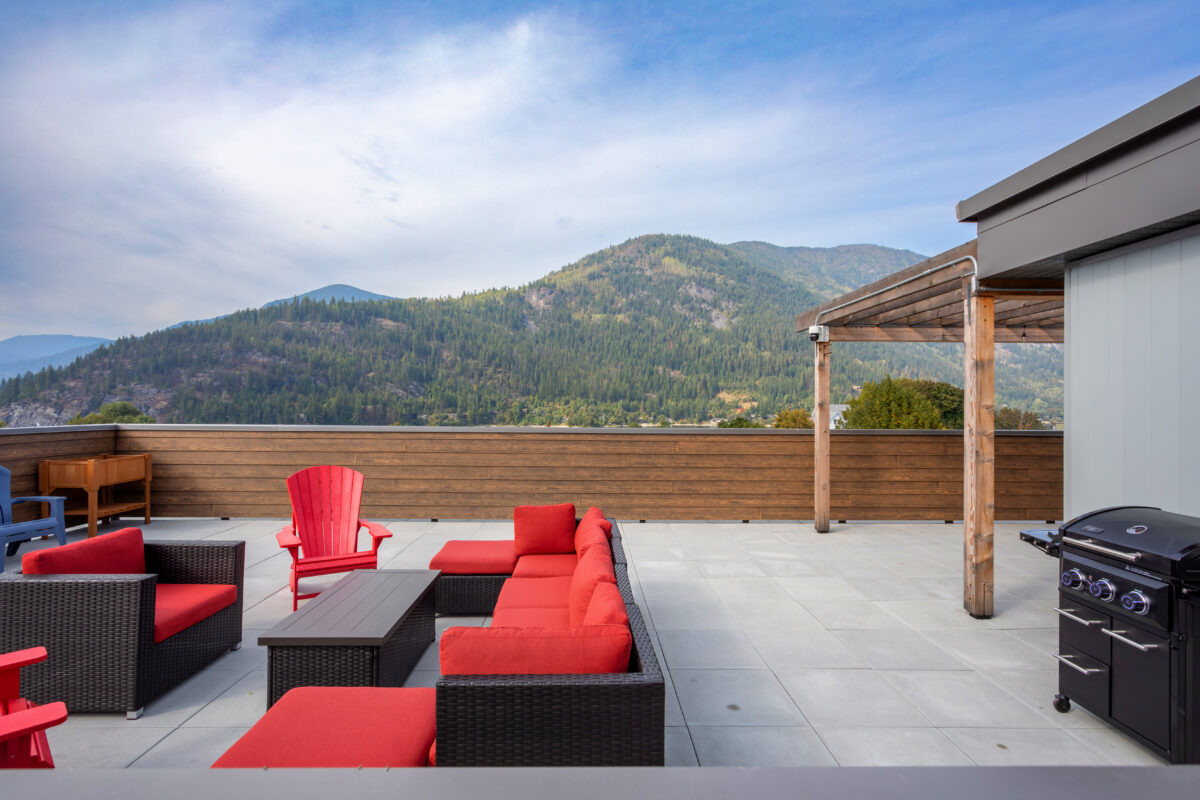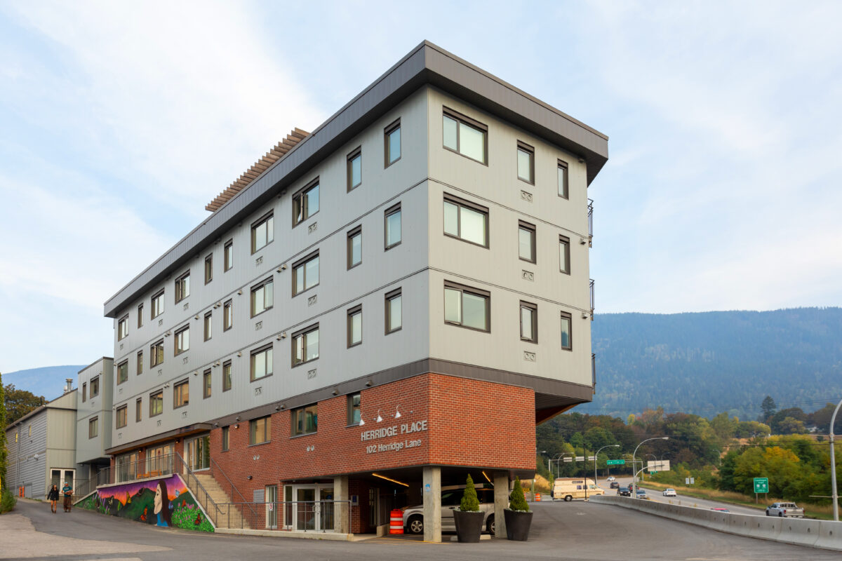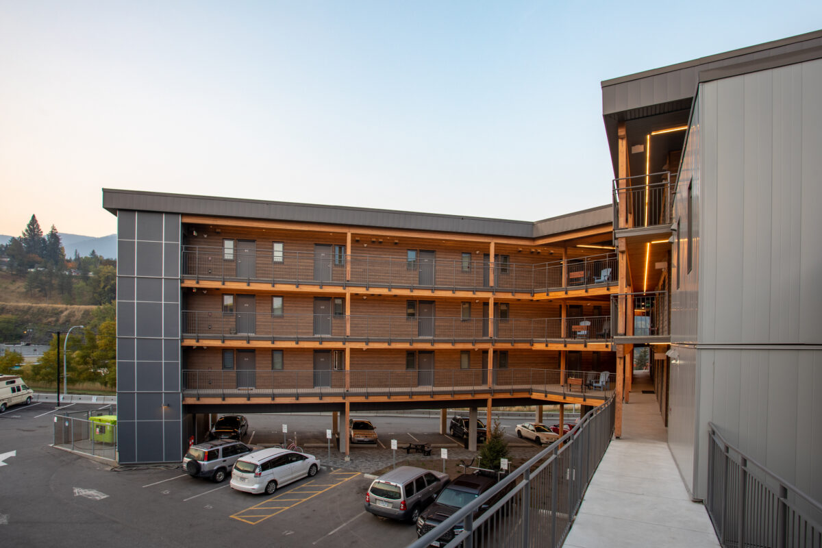 The new, wood-framed, affordable housing development includes 39 units – each approximately 420 sq. ft. in size – as well as commercial space located on the main floor, and a designated meeting room for the Kootenay Christian Fellowship on the second level. The project was delivered through construction management and achieved Energy Step Code 4 of the new Provincial Energy Code.