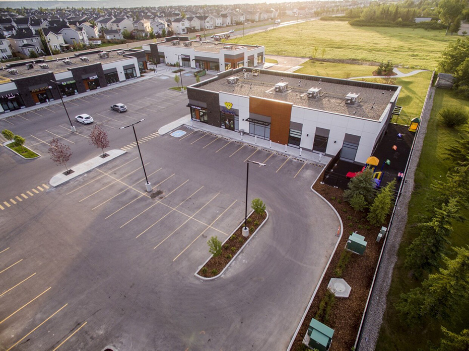 The project included a seven building retail development designed and constructed to demand premium rents from the tenants. The space consisted of a bank, several fast food tenants, a health care facility, a fitness studio, and an anchor restaurant.