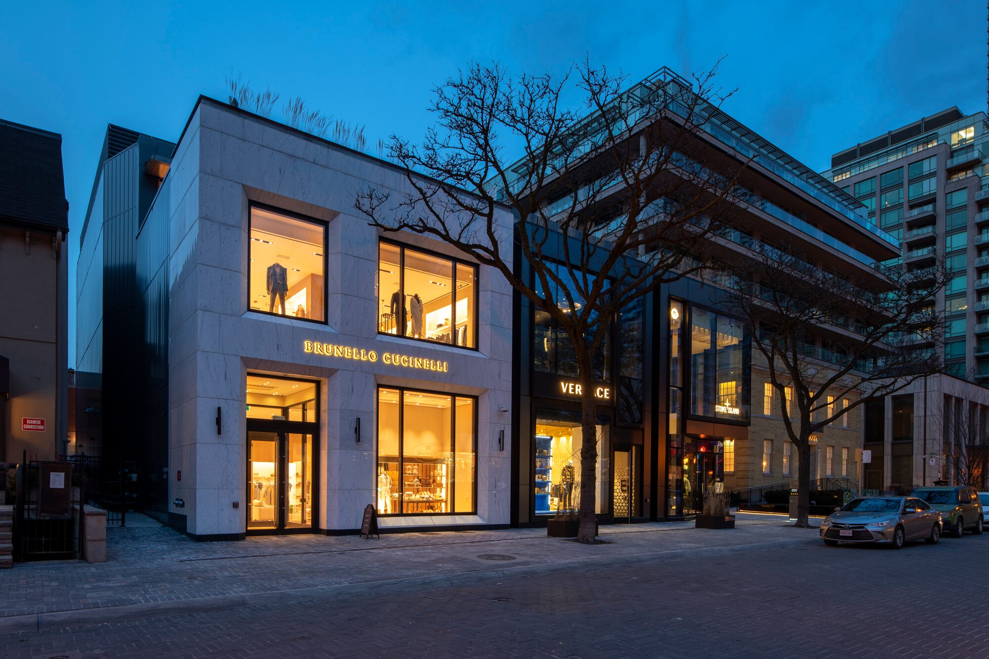 This is a retail complex for high-end shops on Yorkville Avenue in Toronto. The project required the demolition of two buildings, preparation of a new site, and erection of a new structure complete to core and shell.